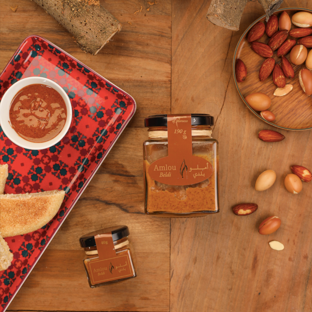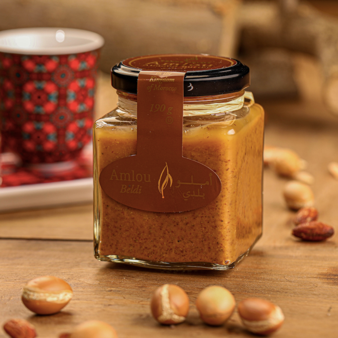 Amlou est une pâte à tartiner marocaine d’origine berbère. Recette traditionnelle et unique, Amlou est le mélange de miel, amandes et d’huile d’argan.